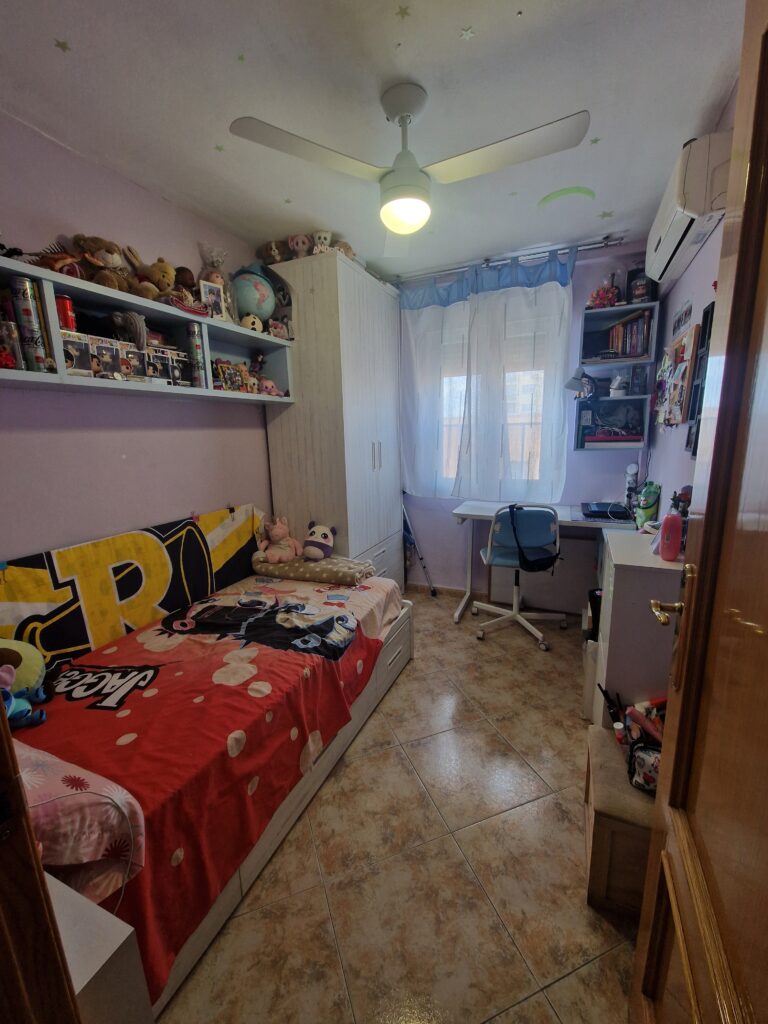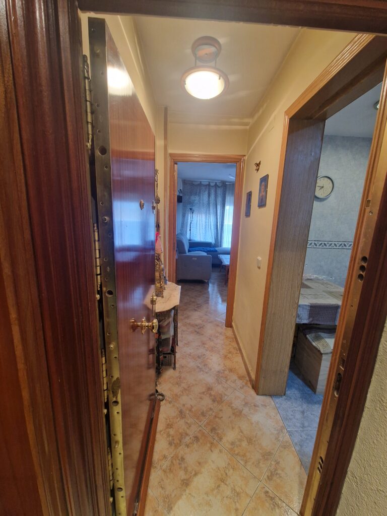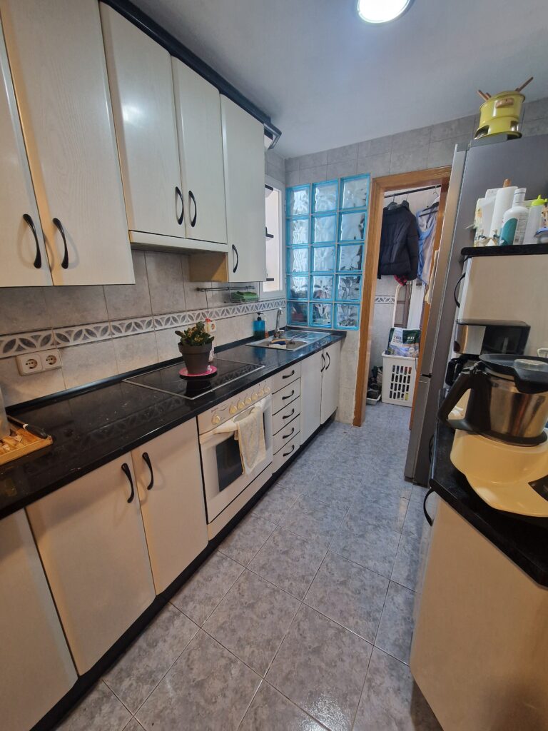 Cuenta con la fachada rehabilitada recientemente. Tiene una superficie de 72 metros cuadrados construidos distribuidos en hall de entrada, cocina amueblada con tendedero, salón comedor con terraza abierta, tres dormitorios y baño completo con plato de ducha. Armarios empotrados en dos habitaciones. Aire acondicionado en varias estancias. Pintura lisa, puertas de roble y ventanas de Climalit oscilobatientes.